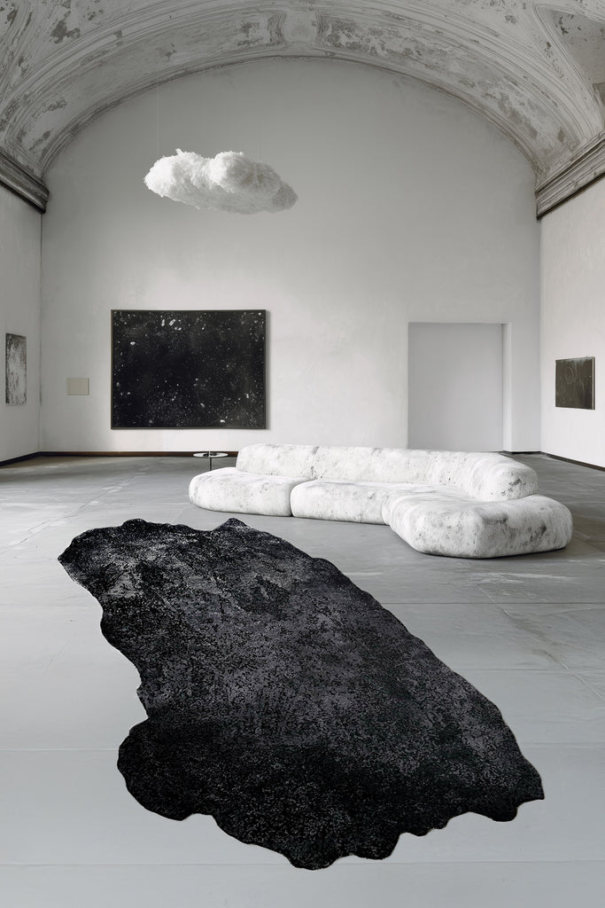 In 'Le Météore de la Nuit', Calle Henzel unveils a series of monumental handmade rug designs, each meticulously crafted in his distinctive style. Central to Henzel's oeuvre is the concept of balance and the principles of physics, inviting viewers to reflect on the intricate interplay between science and art.