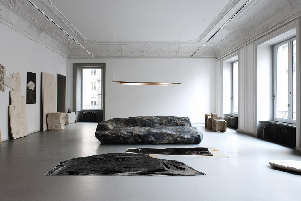 Executed with artisanal precision, the rugs carry the imprint of collage and construction, echoing the tactile immediacy of their origins while transforming into monumental, hand-knotted pieces. In the context of Atelier Bowy C.D., Assemblage becomes more than a collection of rugs: it is an inquiry into how surfaces are perceived, how fragments can remain connected, and how a unified whole can emerge from what has been divided.