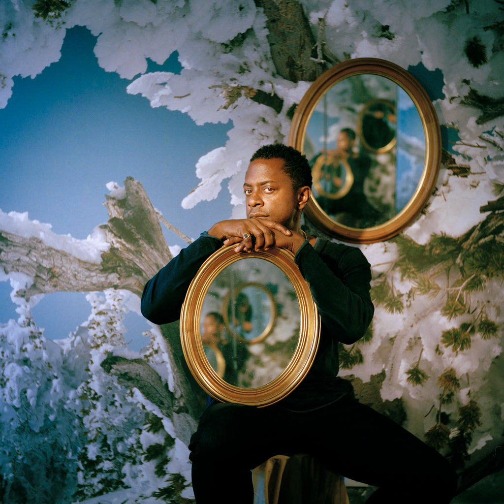 Sanford Biggers is a contemporary artist, he works in sculpture, video, installation, and performance. Bigger's work is known for its combination of meditative rigor and improvisatory edge, resulting in multilayered compositions that draw from the Buddhist idea of hip-hop culture, constellations, Afrofuturism, slave quilts, Jazz, and mandalas. Despite his use of disparate themes, Biggers manages to seamlessly combine them into works of beauty and grace. Born in 1970 in Los Angeles, CA, he received his MFA from the School of the Art Institute of Chicago in 1999. Biggers currently lives and work in New York, NY. For HENZEL STUDIO, Sanford Biggers re-appropriated his painting Ibeji (Duet).